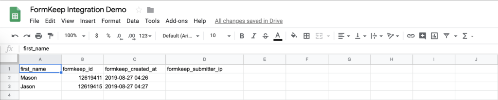 FormKeep’s Google Sheets integration gives you all your submission data in a single place. All of the latest submission data from your forms is at your fingertips and can be accessed with ease. By linking your FormKeep account to a Google Sheet you will completely cut out the tedious steps of logging into your FormKeep account and refreshing the page to see your live form submission data. With the Google Sheets integration there’s no need to export to an external spreadsheet. All the data you need will funnel straight into your Google Sheet in real time! As the form owner you have full accessibility to customize which form data goes into your Google Sheet and where in the sheet it sits. Watch the video above for a full guide to rearranging form data in your Google Sheet.