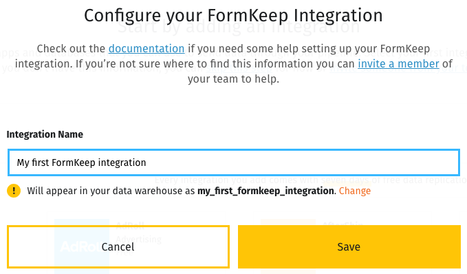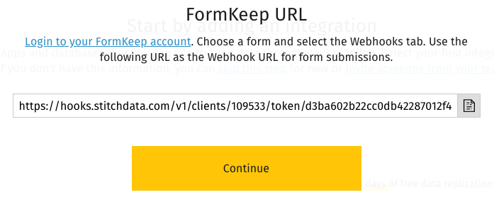 Configure FormKeep to send the data to Stitch