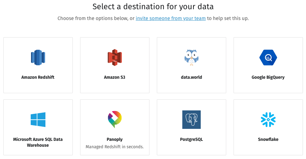 Let's set up a three-tiered data analytics stack, starting with the data warehouse. If you don't already have a data warehouse, choose one that meets your needs. If you choose Redshift, BigQuery, Snowflake, or one of the other destinations Stitch supports, you can also follow the setup steps for your data warehouse in the Stitch documentation.